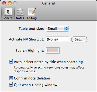 De titel van een nieuwe aantekening typ je in een witregel die tevens als zoekbalk fungeert. Midden in het lichte Notational Velocity vind je een lijst met alle opgeslagen notities; onderin voer je de werkelijke informatie in. Een aantekening geef je desgewenst ook een tag, oftewel een etiket. Hierdoor sorteer je de notities met Notational Velocity niet alleen op alfabet en toevoegingsdatum, maar ook op categorie.
