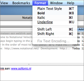 Het aanmaken van en zoeken naar aantekeningen doe je in dezelfde balk, maar het werkt perfect. Het menu van Notational Velocity bevat geen enkele knop: alle acties zijn met het toetsenbord uit te voeren. Het gebruiksvriendelijke opensourceproject slaat je data dan ook automatisch op. Deze wordt 'een' met de software, zodat je niet aan bestanden hoeft te denken. Eventueel synchroniseer je ook data met de opslag-applicatie Dropbox en Simplenote, een notitie-app voor de iPod en iPhone.